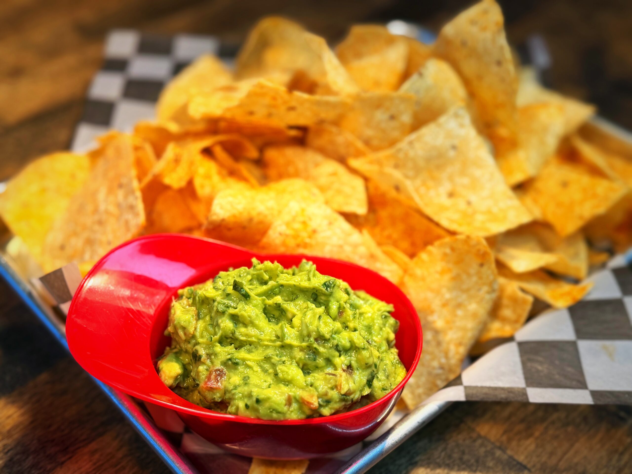 Our house-made tortilla chips with a trio of zesty salsa, fresh guacamole and creamy white queso topped with pico de gallo